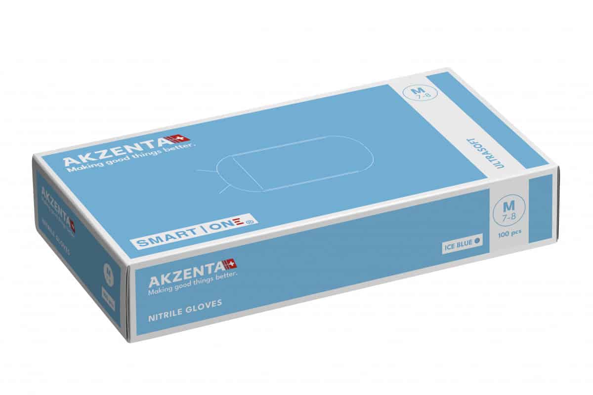 SMART | ONE Ultrasoft Nitrile Gloves come in an attractive packaging which reflects the color of the gloves.